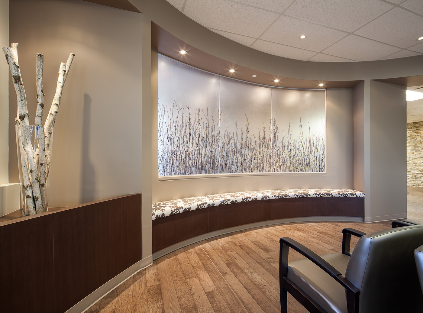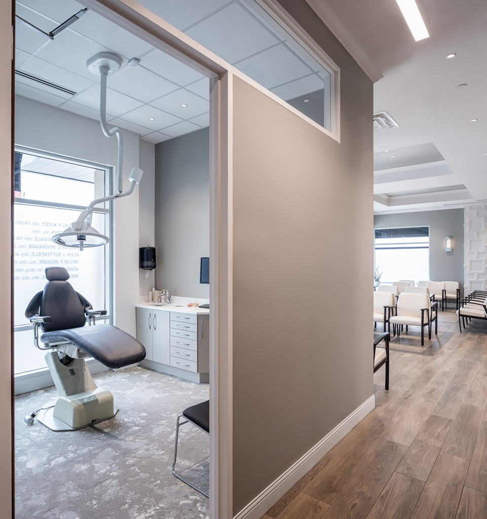 For Argyle Associates new state of the art oral surgery clinic headquarters located in Barrhaven, we designed a space which offers a sense of serenity through the use of wood tones, clean and crisp whites, soft grays, and highly textured panelling. The reception area was configured for daytime patient use and can be transformed in... Read more » [... Read More]